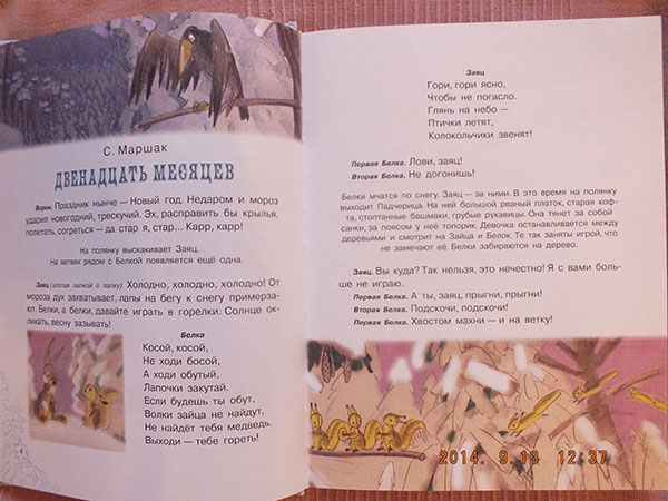 Сказка "Двенадцать месяцев" ( в сокращении), рисунки как в мультфильме.
