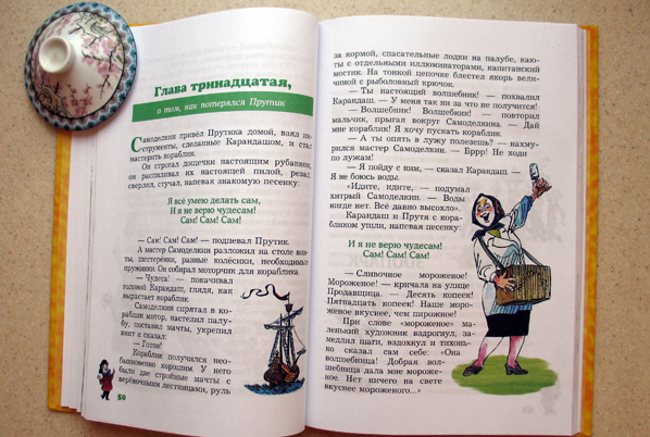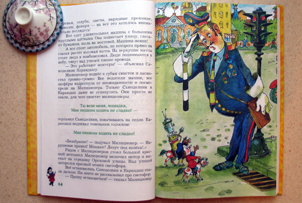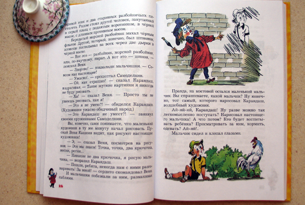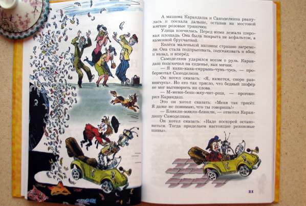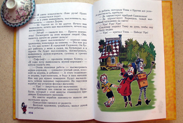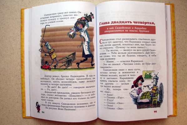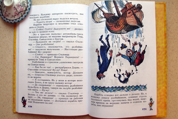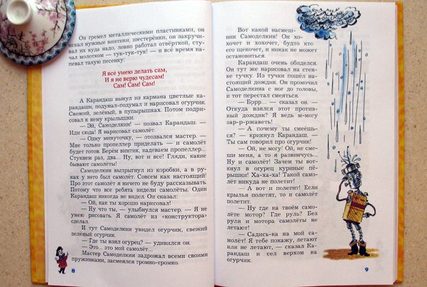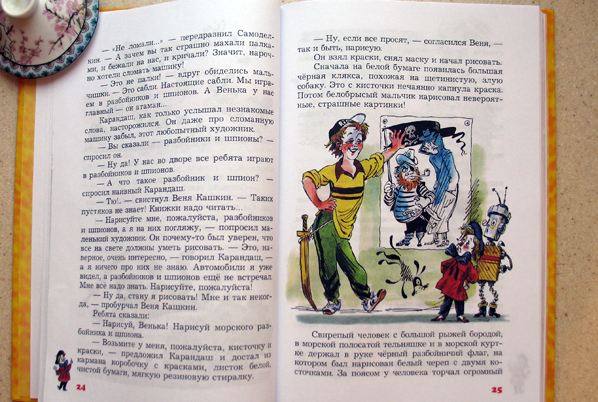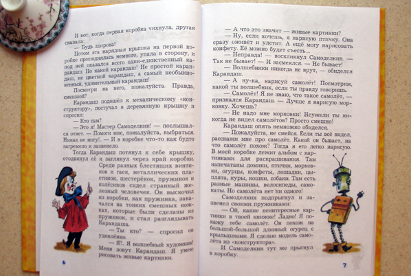 Первая реакция мужа была еще хуже. Он сказал, что это какая-то урезанная версия, что его Карандаш и Самоделкин были потолще и рисунки не те (ясно дело у него был Семёнов, а здесь Елисеев, а Семёнова я благополучно проворонила, думая куда торопиться) Но когда он прочитал содержание, сказал, что все вроде на месте.