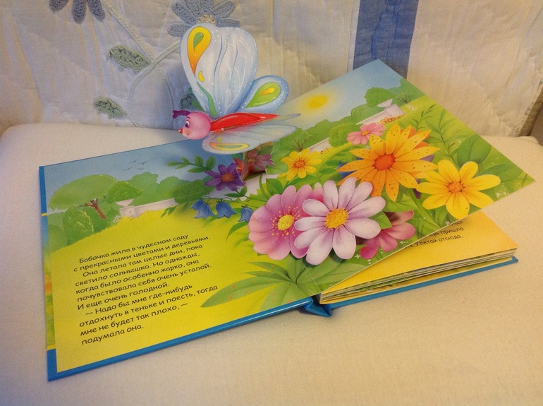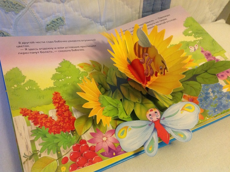 8. "Бабочка и ее друзья" книжка с панорамками, хотелось удивить ребенка, и получилось! Панорамки качественные, из плотного картона. Сказка поучительная, про жадную бабочку, которая в конце исправляется и учится делиться с друзьями.