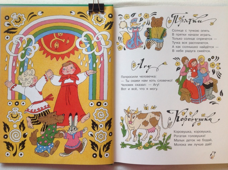 3."Стихи и сказки для малышей" от издательства "Олма-пресс". Содержание у книги неровное, тоже самое с иллюстрациями. В результате мы читаем ровно половину книги, пока не начинается иллюстративный хардкорА начинается он на лепеталках Александра Кожевникова, ради которых, собственно, и покупалась эта книга