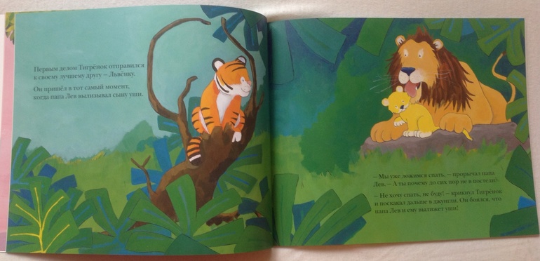 "Мышка-трусишка" - отличная книга с захватывающим сюжетом, Ксюша совсем недавно хорошо про нее рассказала. У дочки одна из любимых."Не хочу спать" - совсем простая история: тигренок не хотел спать, мама отпустила его гулять по джунглям, но все друзья тигренка уже ложились спать, да и вообще ночью темно и страшно. Если у вас есть что-то подобное в библиотеке, можете спокойно пропустить(особенно если нет проблем со сном) Дочка читать книжку отказалась категорически, испугалась льва