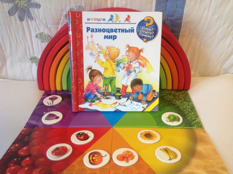5."Разноцветный мир" - энциклопедия из серии "Зачем? Отчего? Почему?", книга неплохая, занятная, но для двухлетки рановата. Не смотря на увлечение темой цветов, дочка книгу проигнорировала.