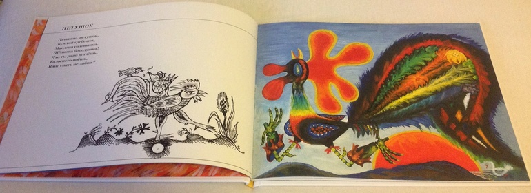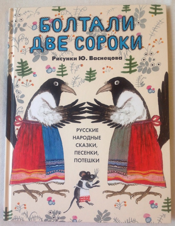 2."Болтали две сороки". У нас уже есть несколько сборников потешек с иллюстрациями Васнецова, а также тонкие книжки со сказками от Акварели и Азбуки, но я все равно не удержалась от покупки. И не жалею, Васнецова много не бывает, да и многих потешки не дублируются. Минусы книги - тонкая бумага и плохая печать отдельных иллюстраций.
