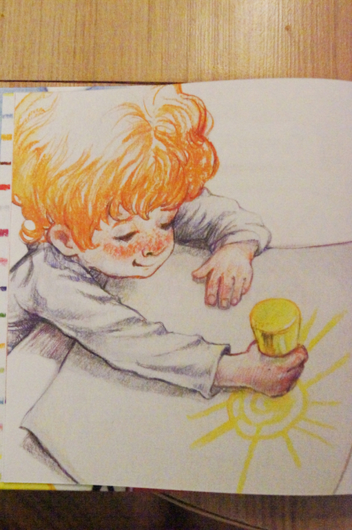 Такая вот яркая, милая, разноцветная книга для юных фантазеров и художников. Ко мне в руки она попала еще горченькой холодной, только только принесли к открытию выставки.