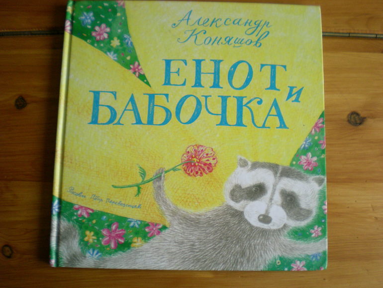 На выставке было несколько книг Коняшова, в том числе и "Енот и бабочка", еще была книга по "Речку" (если не ошибаюсь, художник тоже Петр Перевезенцев, стилистика рисунков похожа)..