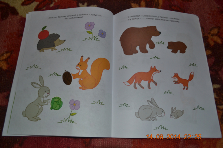 Далее идет книга из серии книг Земцовой О.Н., которых у нас очень много и которые моя дочь просто обожает! Постоянно пристает ко мне:"Давай заниматься!". Это книга называется "Знакомство с природой". В ней ребенок изучает растения, животные, клеит тематические наклейки. В целом, полезная книга. Вот ссылка на нее тут