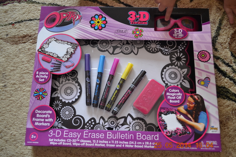 Второй игровой набор предназначен для девочек. В него также входят очки с 3D эффектом, доска для рисования, разноцветные маркеры и губка. Этот набор мне понравился еще больше. Когда нарисуешь на доске, а потом посмотришь на рисунок через очки, то изображение кажется объемным. Очень хороший набор, отлично подойдет на подарок! На момент моего заказа он стоил около 600 рублей, сейчас копейки - 126 руб. Вот ссылка на него Доска для рисования. По этой ссылке можно прочесть подробный отзыв и посмотреть подробные фото тут