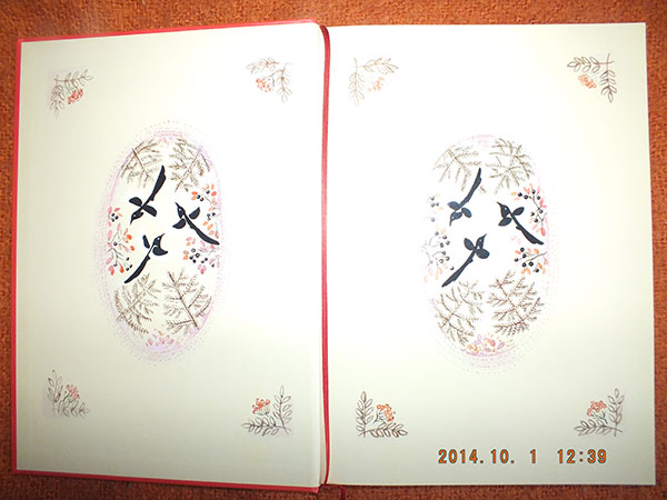Вот такой красивейший форзац, очень нам с Семеном тут сороки и рябина нравятся.