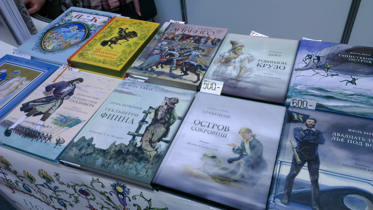 Издательство Махаон... Очень понравился их стенд. Ценами не интересовалась)))