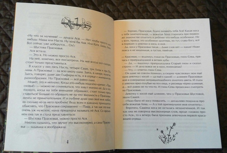 "Асино лето" - эта книжка мне кажется предназначена для девочек лет с 6. В ней совсем нет иллюстраций. История про девочку Прасковью и ее приключения с веселыми гномами.