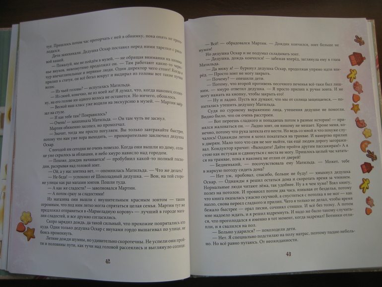 Там и тут по страничкам рассыпаны то сладости (когда речь идет о Шоколадном дедушке), то перец, соль, горчица и т.д. (когда рассказ касается сестер Паульсен):