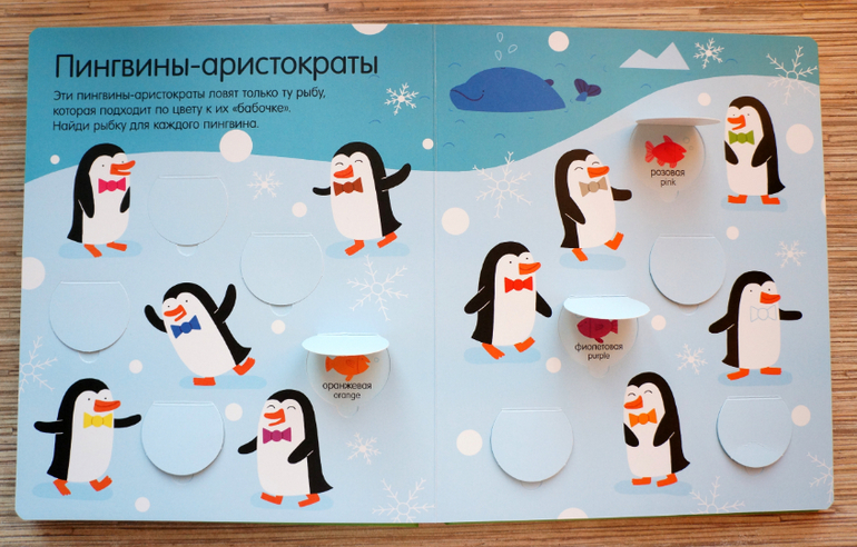А здесь - подобрать каждому пингвину рыбку исходя из цвета его бабочки: