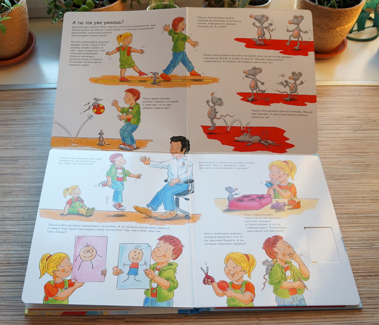 Формат довольно большой, плотные картонные страницы, много открывающихся окошек. Конечно, не совсем наша история про поликлиники ))) Будем считать, что это про частные медицинские центы, в которых есть игровые зоны для ожидающих своей очереди детей ))