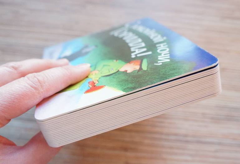 Обложка ламинированная, основные страницы - довольно плотные, потому что склеены из двух слоев картона. А отгибающиеся - однослойные, они потоньше (обычный картон, как для визиток). Книга не антивандальная, но довольно прочная.