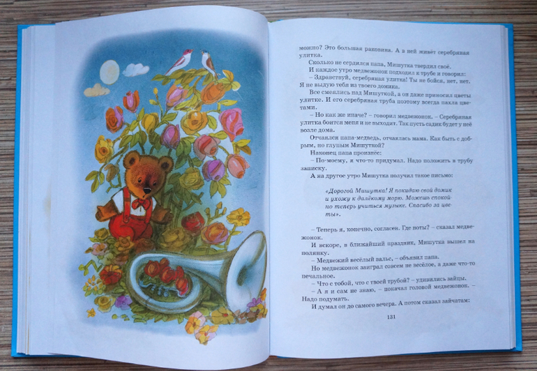Купила ее после успеха у Фили небольшой книжицы того же автора "Жил на свете слоненок". Эта книга большая и толстая, сказок очень много (в том числе, знаменитый "Паровозик из Ромашково"). Но большинство сказок мне просто непонятны, если честно... Какой-то в них намек на мораль и философию, но невнятный, как мне кажется. Мы, правда, пока читали только некоторые, но я никак не могу проникнуться ))) Есть неплохие, но есть и совсем непонятные для меня.