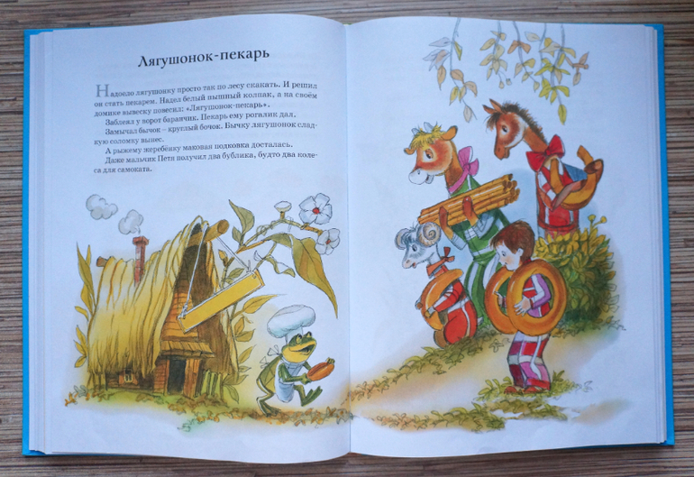 Философская притча с переложении для детей с очень смешными иллюстрациями )) История о том, что все познается в сравнении. Качество тоже очень хорошее, но выглядит она немного попроще предыдущей. Конечна, смысла притчи Филя еще не понимает, но ему нравится сама история про старушку и животных.