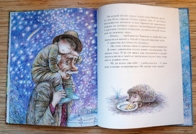Книга удивительная! Иллюстрации - цветные карандаши, просто потрясающие! Я их могу подолгу разглядывать. И содержание очень хорошее, про то, как дедушка помог внуку справиться со страхом темноты. Очень рекомендую книгу!