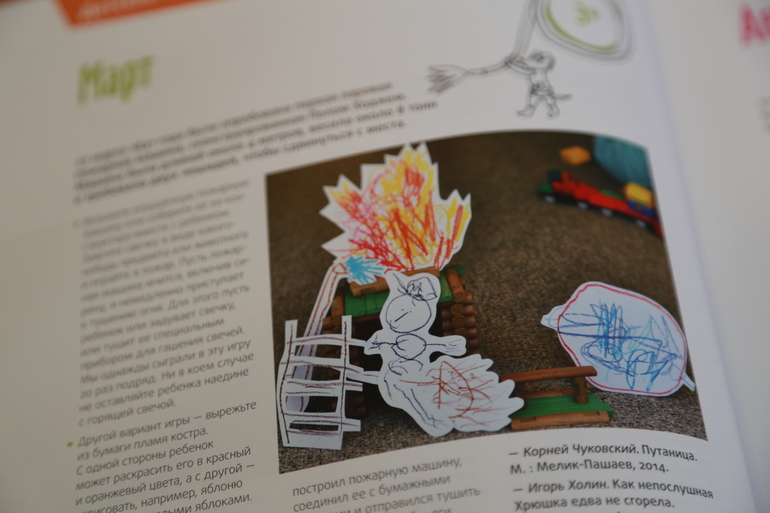 В книге не только то, что ожидаешь увидеть. Скажем, игры со льдом, снегом, буквами нам уже знакомы. А вот глава 4 "Что происходит на свете" показалось очень интересной с точки зрения подачи информации. Действительно, любое событие в мире можно интересно "по-детски" преподнести своим домочадцам. Посмотрела в календарь и тема дня готова.