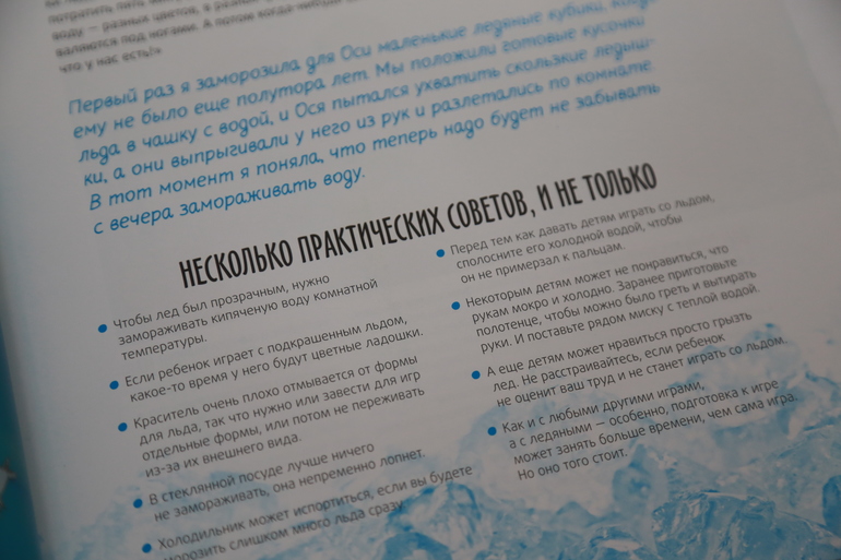 Здесь много всего того, что мы дома называем опытами. Для нас сейчас именно они имеют первостепенное значение, поэтому Айсберг на ковре потихоньку становится нашей настольной книгой.
