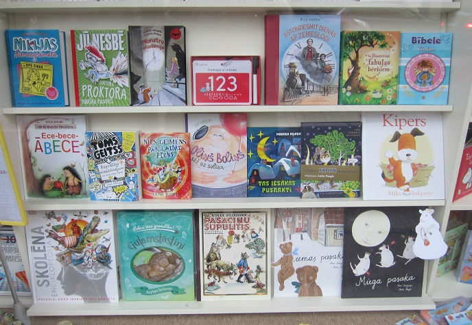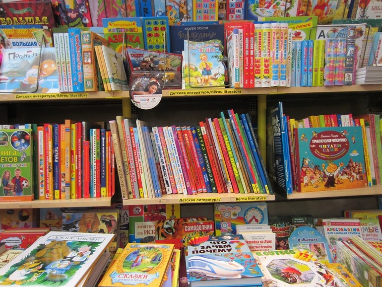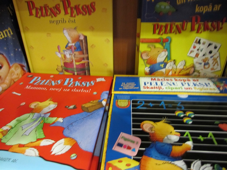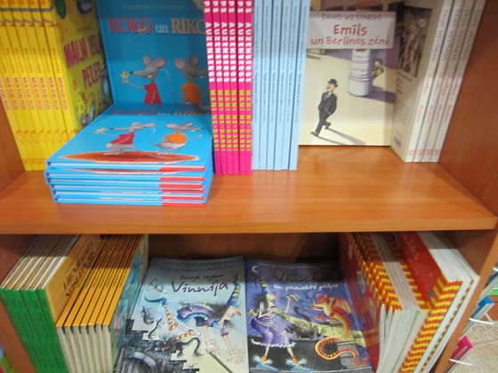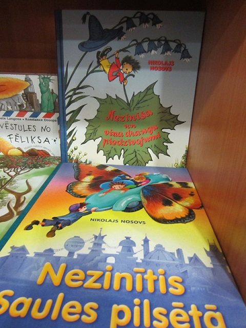 На этом стеллаже на второй полке справа "Желудьки" в белых обложках (не те, что лежат, а те, что стоят). Была уверена, что сфотографировала, но не нашла((( Так вот это не просто обложка другого цвета, это книга на русском языке. Вышла в серии "Учим русский язык", внутри текст вложен отдельной книжечкой по-латышски. Продавец в одном из книжных на мой вопрос о книгах, изданных в Латвии на русском языке, возмущённо ответила, что этот "Желудёк" - единственная за последнее время. Она говорила по-русски с очень сильным акцентом, но её возмущал тот факт, что издатели совершенно не думают о русскоговорящих жителях Латвии.