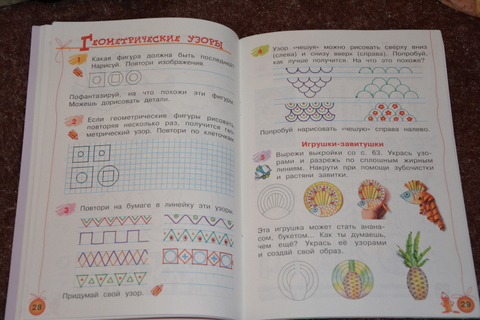 Вот составление узоров (разнообразных) я считаю вообще очень ценным материалом, т.к. лично мне, например, не имея художественного образования и имея мужа-творца, очень сложно объяснить что такое гармония рисунка.