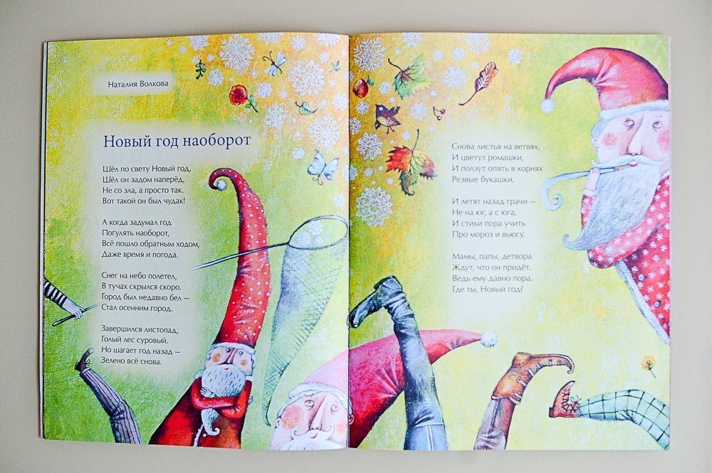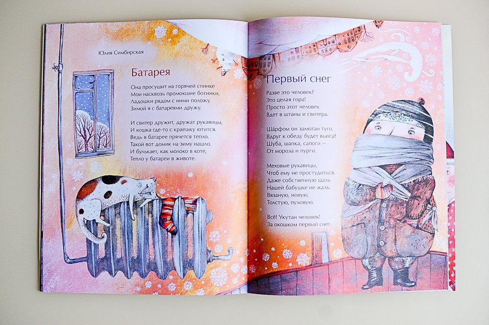 Еще один стихотворный сборник про зиму и Новый год. Несмотря на непритязательный вид и незамысловатое наполнение, довольно удачный. Легкие новогодние стихи и скороговорки в лучших традициях детского сада. Если вашему ребенку к утреннику велели выучить стишок, то эта книга определенно справится с поставленной задачей. Рукавички-синички, шарики-хлопушки, а также милые персонажи, одетые по моде 80-х - все это отдаленно напоминает советские стихи, какие были в нашем детстве. Добрые, простые и такие настоящие. И очень новогодние, да.