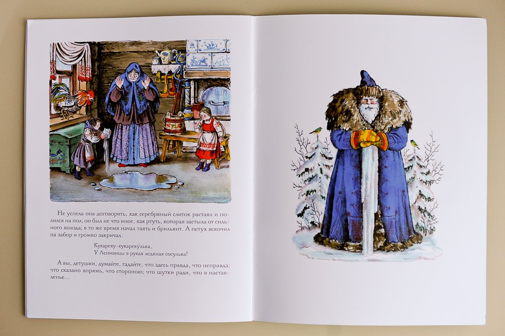 Настоящая русская сказка. С прекрасным языком и старинными речевыми оборотами - ее читаешь, и слова сами льются, точно музыка. Все эти «ведерко в студенец опустила», «платье у старика починила», «белье выштопала» приятно ласкают слух и создают неповторимую атмосферу. Атмосферу чего-то волшебного и уютного, такого, что бывает только в детстве. Наверное, неслучайно второй страстью Одоевского, помимо написания детских сказок в далеком XIX веке, была именно музыка.