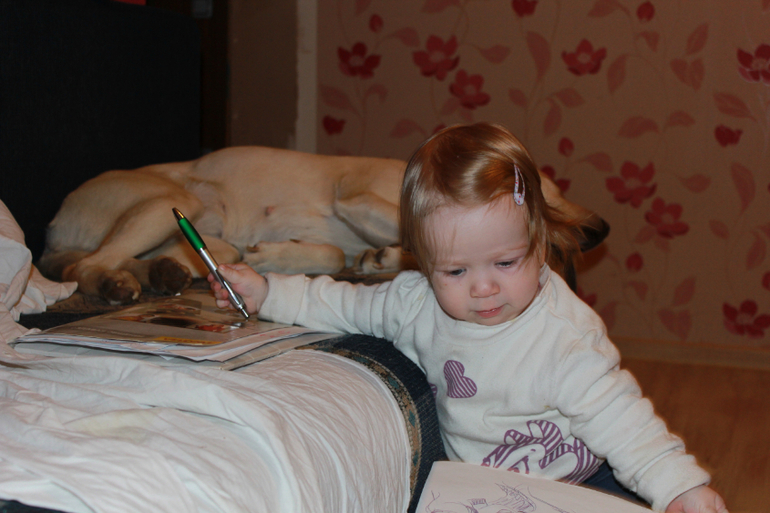 у меня младшая тоже любит пожувать книжки)), хотя и без зубов пока. а что там у вас за милаха на втором плане?)лабрадорчик? мы тоже с лабриком)) увидела фотку, аж непроизвольно "расплылась в улыбке". чудесные детки у вас и хороший, добрый пост.