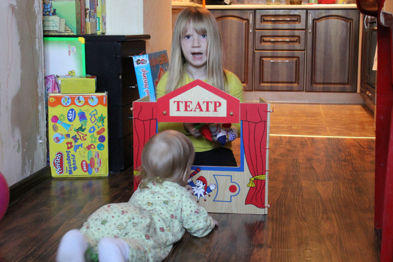 мы тоже в рядах голодных гусениц (Я даже специально выделила парочку для погрызть) прекрасный пост))) улыбательный))) у нас тоже есть виммельбух такого плана, но в рамке и из фото — надо извлечь.. бедный старший деть — просит защиты театра))) — такая знакомая сцена)))