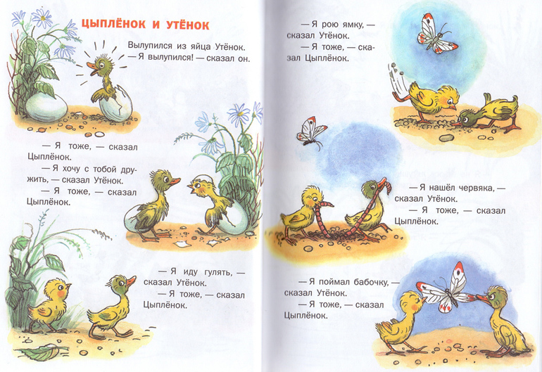А история про утёнка и цыплёнка ему не приглянулась, потому что цыплёнок чуть не утонул - и сын впечатлился почему-то, боится, пропускаем эту историю пока.