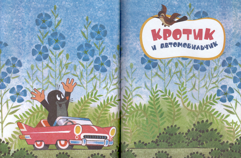 А вот следующая история "Кротик и автомобильчик" - наоборот - зачитанная) Потому что машинки мы любим очень, и картинок в книге очень много с машинками - развороты очень хороши! Собственно из-за этой истории мой мальчишка так любит эту книгу)