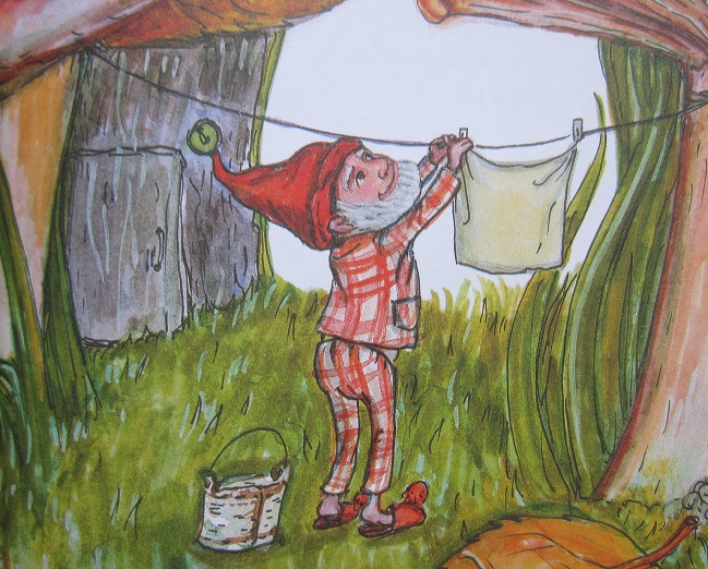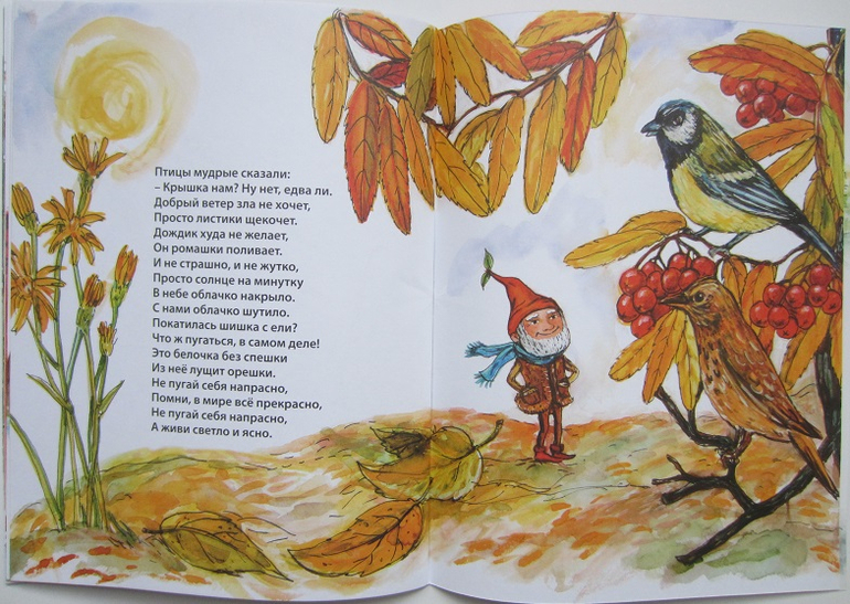 И первой вытащила утром из стопки именно эту яркую книжку. Начала рассматривать и читать, вчитываться и вглядываться, слегка расстроена. Это мой занудный взгляд, но забегая вперёд,скажу: книга у меня останется, и гномы будут жить)))