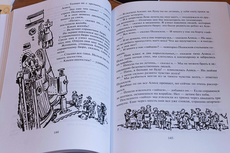 Эту книгу я, пожалуй, купила для себя. Люблю Булычева. ))) Иллюстраций почти нет, они черно-белые. Много-много текста любимых историй про Алису: