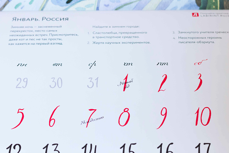 7. И чудесный бонус: Литературный календарь Лабиринт 2015.