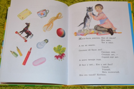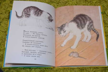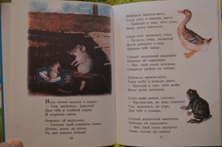 Читали сказку про глупого мышонка и умного мышонка. Дочка переживала за мышонка, боялась, что его кошка съест))). Раньше часто читали рассказ "Усатый полосатый".