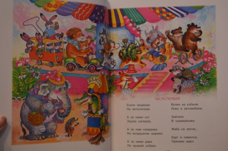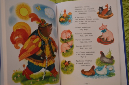 Эту книгу нам подарили. Сама бы наверно выбрала другой сборник, т.к. иллюстрации мне не очень нравятся Книгу, кстати, иллюстрировали разные художники. А вообще книга красивая , в пухлой обложке, глянцевый страницы , яркие иллюстрации (хотя, это всё может быть и минусом))). И не понимаю, почему издатели не включили в книгу "Телефон", да и "Краденое солнце" тоже хотелось бы увидеть. Хорошо, что они у нас есть в другой книге.
