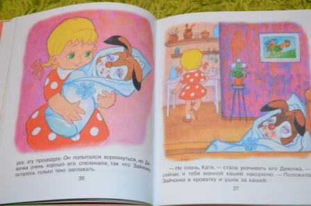Один из любых мультфильмов у дочки - "Живая игрушка". Когда увидела эту книгу, то не раздумывая купила. Текст в книге на любителя. Если раздумываете, купить или нет книгу, то советую сначала почитать развороты.Многие текст ругают. А вот мне понравился. Нужно просто читать с юмором, с интонацией, тогда текст в книге оживёт. Будет виден диалог с читателем. Например: но вот его, наконец, вытащили из логова, берлоги, пещеры (не знаю, как называется жилище зайцев)... Дальше я спрашиваю у ребенка: "А правда, как называется жилище зайцев?" Дочка отвечает.