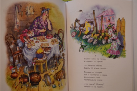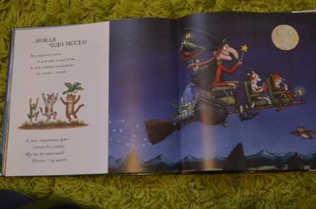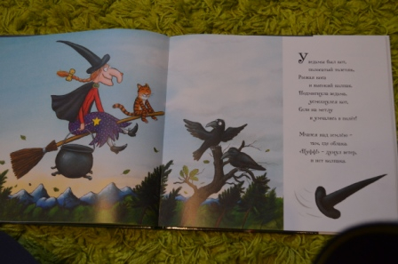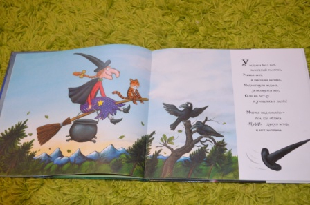 Книгу показывали в сообществе не раз. Да, качество на высоте! Иллюстрации и текст (именно с такой странной рифмой и ритмом) очень нравятся и мне и ребенку. Только вот случилась у нас одна неприятность))) Прочитали мы книгу и дочка попросила посмотреть мультфильм. После просмотра мультфильма взяла книгу и стала искать первую страницу, на которой нарисована ведьма в палатке (так начинается мультфильм) и была расстроена, что такой страницы в книге нет))) Так что, в книге есть небольшие расхождения с мультфильмом.