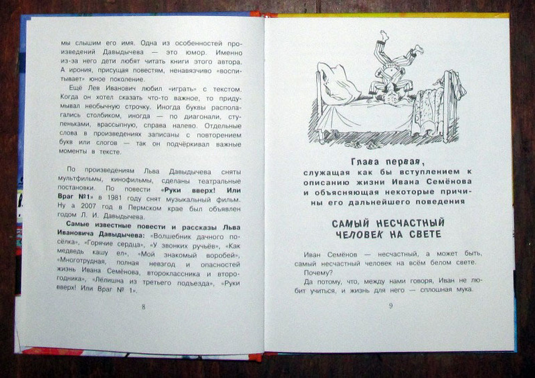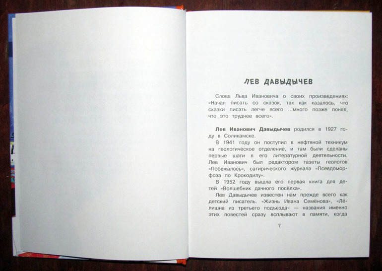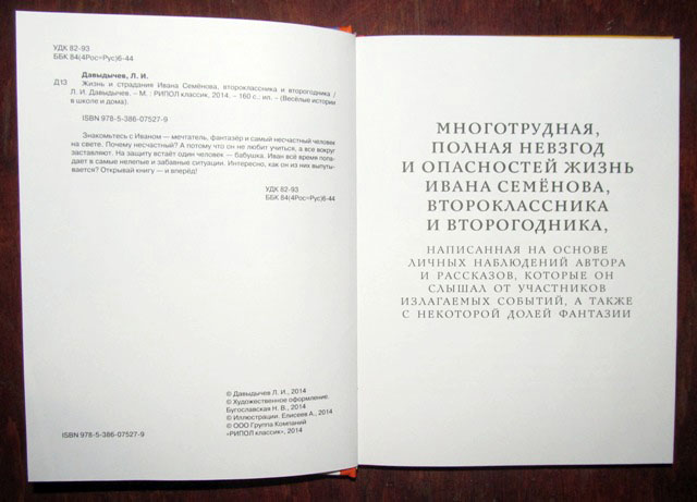 Я, как Пермячка, выросла на книгах Давыдычева. У него и другие есть, но Иван Семенов — самая известная. У меня с другими иллюстрациями, Багаутдинова, но у Елисеева тоже замечательные вышли. Недавно только думала, что сейчас много книг переиздают, а Давыдычева нет. А тут приятно так...Ещё очень люблю Лелишну из третьего подъезда, тоже Давыдычева. Не знаю. издавалась ли она в последние годы. С сыном месяц назад прочитали с большим удовольствием.