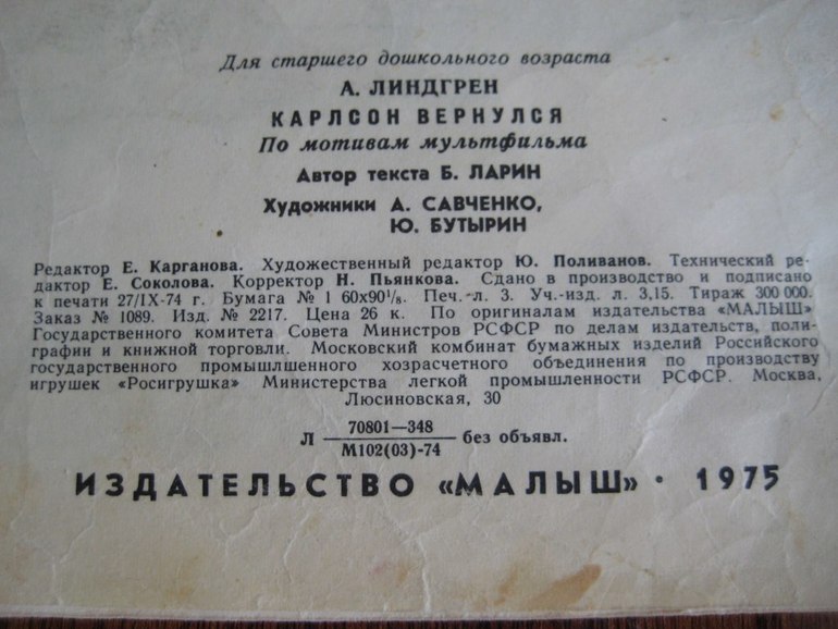 букинистикаВ продолжение вчерашнего Карлсона покажу какой у нас есть из раритетных.