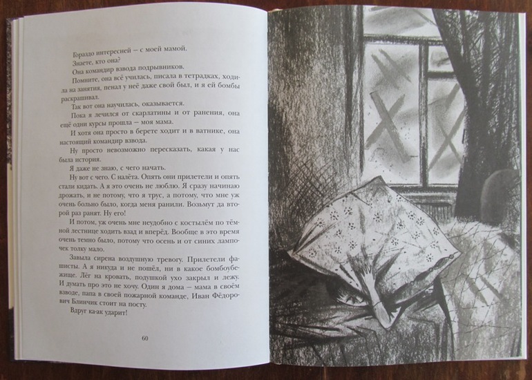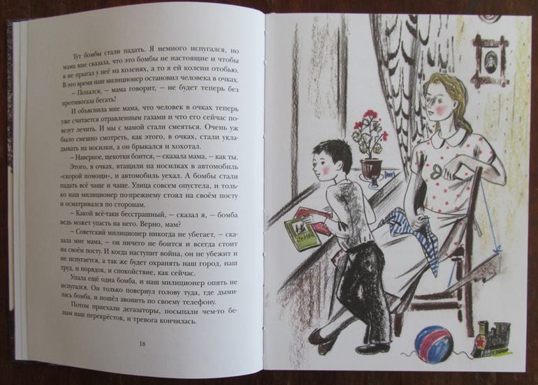 В любом случае, книжку лучше читать вместе с ребенком: пояснить что такое воздушная тревога, зажигательные бомбы и другие реалии военного быта. Мне кажется, даже слова о Родине, которые есть в книге, нужно как-то особо отметить. Например: «Когда наша Советская Родина в опасности, стыдно искать работу полегче».