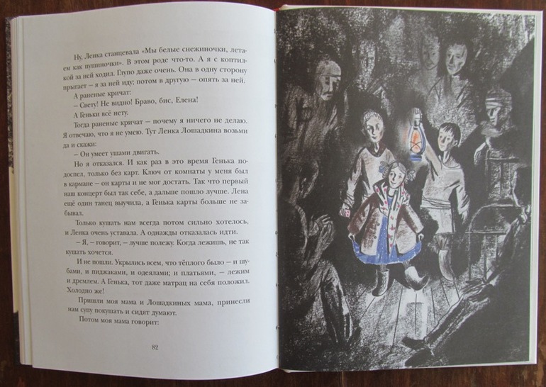 Очень важно для детского чтения то, что в книге нет никаких описательных ужасов. Да, голод, холод, бомбежки, но автор все же показывает это через призму детского восприятия. Например, вот так: «вода остановилась - из кранов не идет, и хлеба совсем мало давать стали, и мама не приходит…». И важно то, что книга вся охвачена надеждой и полной уверенностью в победе. Потому-то и празднуют люди прорыв блокады вместе - радость у них общая! Они вместе боролись - все вместе: и маленькая Леночка, и старуха с бидоном Ангелина Марковна - и они победили! Потому-то в финале «И весь народ плачет от радости, что едут родные победители».