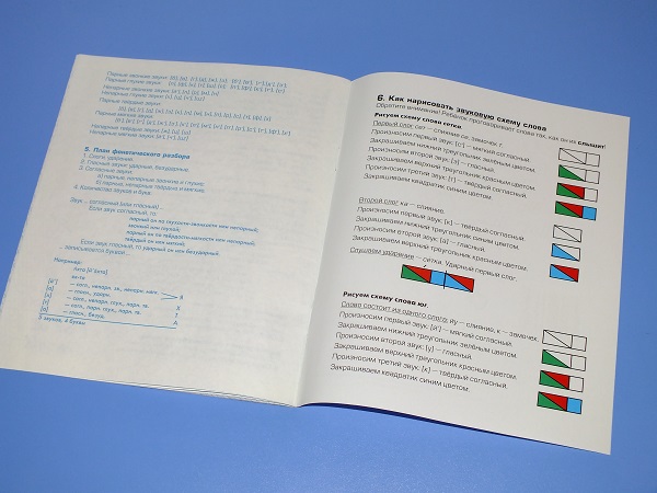 1. Просто тетрадь в косую линейку с наклоном влево. Страничек не много, они тонкие. Но за неимением лучшего, и то хорошо. В конце дан справочный материал по фонетике, показано написание прописных букв. Алфавит.