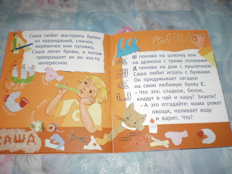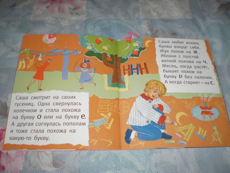 Вообще, строго говоря, эта классически выполненная детская книга с крупным текстом и детскими иллюстрациями таковой вообще не является. Это не художественное произведение, а, скорее, план-конспект чем можно занять ребенка. Причем, исключительно для неленивых родителей. А больше всего это похоже на сценарий, потому что книге не хватает текстовых описаний, подробностей для того, чтоб ребенок мог представить себе происходящее, словом - не хватает видеоряда. Вот тогда бы малыш рассмотрел (представил себе) чем же Саша занимается и заинтересовался. Идеальный вариант - сначала поиграть с ребенком во все то, во что играл Саша, а потом начать читать книгу. Я думаю, что книга именно так и писалась - по воспоминаниям, типа сочинения "Как я провел лето". И за каждой строкой у автора и героя стоит целая история, которую они и вспоминают, перечитывая свою книжечку. А чтобы нам ее читать, надо накопить такой же багаж. И тогда книга станет близкой и любимой. Ее очень хорошо брать с собой в дорогу, на дачу, на отдых - при такой компактности масса вариантов и предложений. Предложение буквально в каждом предложении ))) И представляете, как здорово потом будет ее перечитывать! Сколько воспоминаний всколыхнется, сколько новых идей появится.