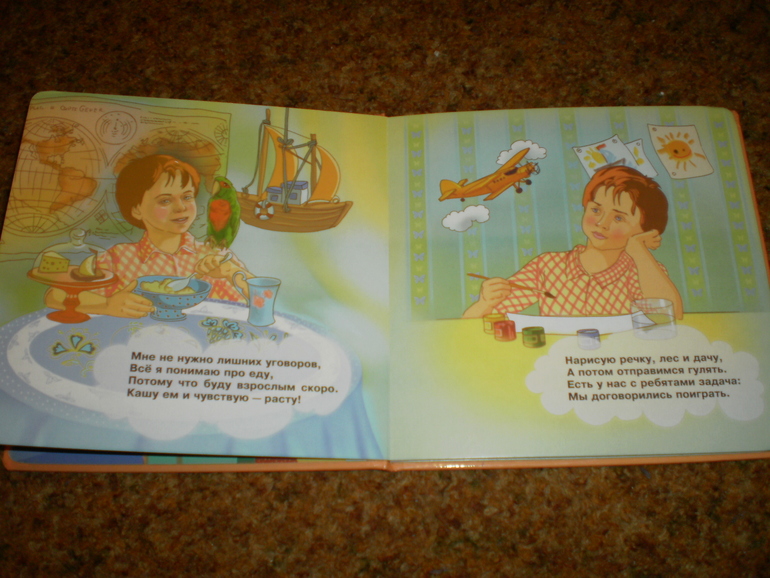 Жаль, что книгу Успенского Удивительные стихи читали пока мало - буквально пару стихотворений, да я с разбегу воодушевленно начала читать им свою любимую Разноцветную семейку, а дети слушать не стали и потребовали включить мультик про осьминожков (((( Но книгу я не убираю, еще будем читать, как только поймаю настроение. Мне она нравится - особенно белыми страницами, на которых много воздуха. Устала я от разноцветных тонированных страниц. Вообще из этого сборника лучше всего идет "Жил-был один слоненок". Очень нравится! Причем, всем и всегда. И Разгром, Рыболов и Птичий рынок.