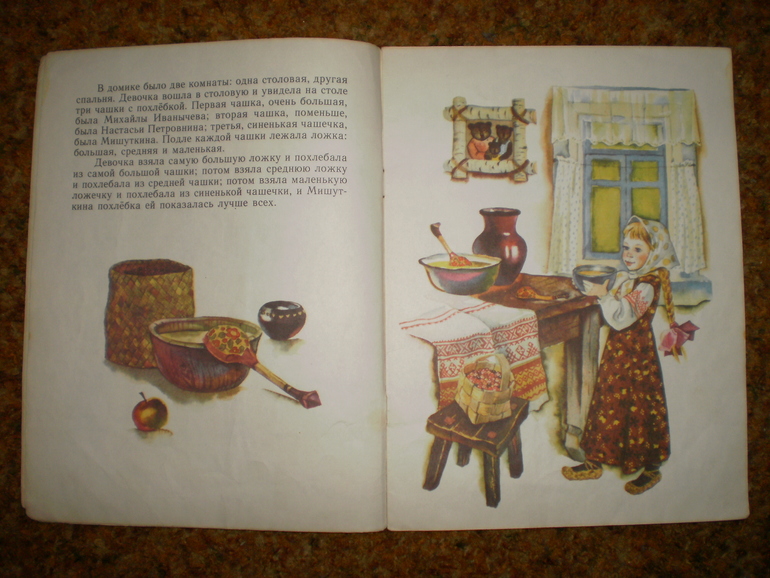 Очень хотелось красивую книгу Три медведя на смену старенькой потертой тонкой книжечке. Выбирала-выбирала, остановилась на этой, с иллюстрациями Ф.Рожанковского. Книга моих ожиданий не оправдала - и девочка страшненькая, и не все нужные моменты подробно отражены в рисунках. Где были мои глаза? Кажется, что прочла только аннотацию издательства, а не отзывы читателей. Или уж захотелось иметь издание для коллекции? Совершенно не помню, помню только что радовалась, заказав... Очень жаль, произведение для нас первостепенной важности, буквально - учебник, букварь пространственно-сравнительной разметки окружающего мира. Из подобных очень важных книг могу отметить еще часто нами читаемую - Гарольд и фиолетовый мелок