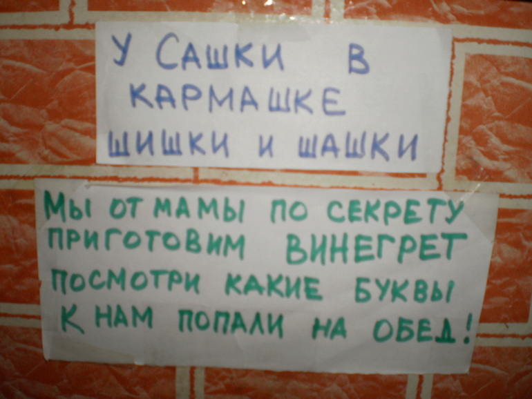 Ну конечно, ведь у нас давно висит на стене бумажка с этой скороговоркой - уже и выцвела, и затрепалась. После знакомства со стихотворными опусами Незнайки Тёмка именно с нее начал повторный анализ наскальных настенных надписей.