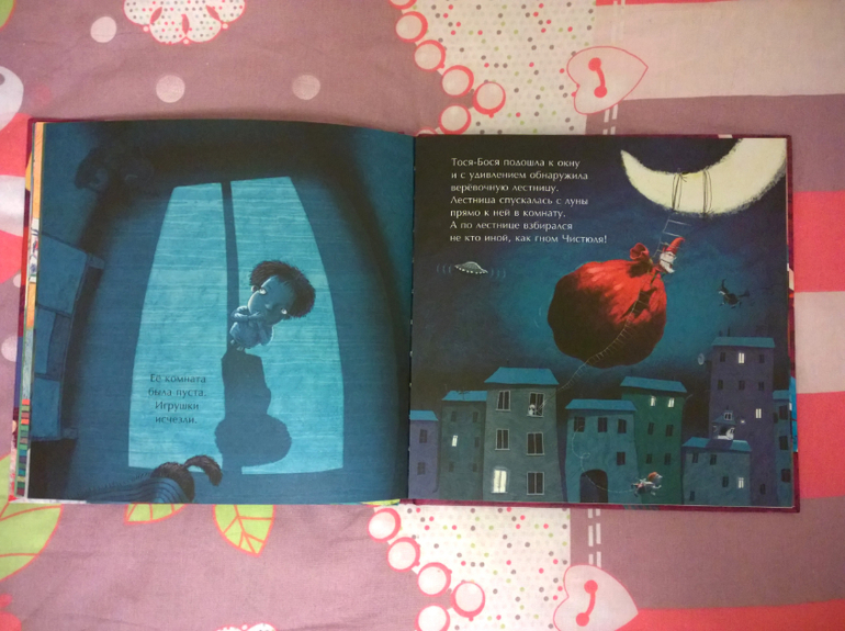 Живые, веселые, необыкновенные иллюстрации, которые, кстати, создала сама автор, и, конечно, харизматичные герои - хулиганка Тося Бося и мудрый чудо-гном Чистюля. Хочу заранее предупредить: книга имеет неожиданные побочные эффекты! Например, мой детеныш теперь с воплями "Придет гном Чииистюююляя!!!" спихивает все папины неосторожно оставленные бумаги в стол, носки - в шкаф, кота - с кровати... В общем, и не знаю, радоваться или нет, но, кажется, Чистюля реально решает может помочь и вашим маленьким и не очень неряхам)