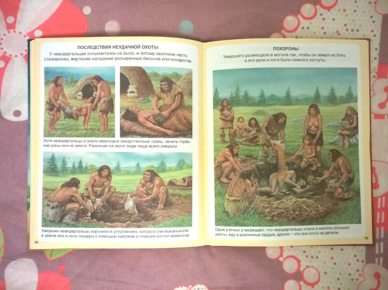 Можно еще долго рассказывать, но главное видно и так:) Кстати, в книге встречаются довольно-таки реалистичные изображения охоты и древних людей, забывавших носить одежду. Лично меня это не смущает, но особо мнительным гражданам лучше на всякий случай пролистать книгу перед покупкой)