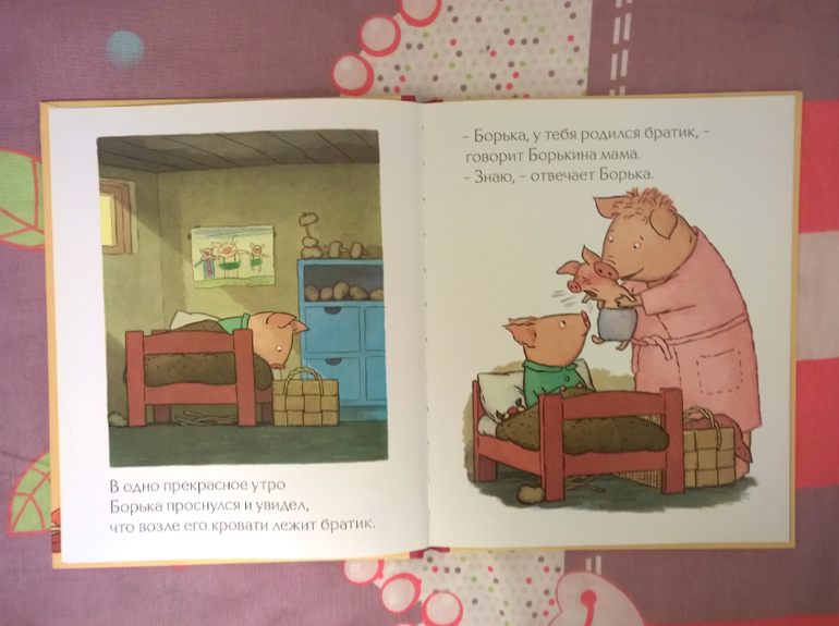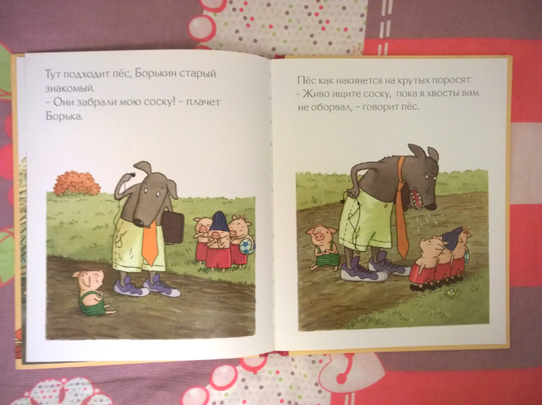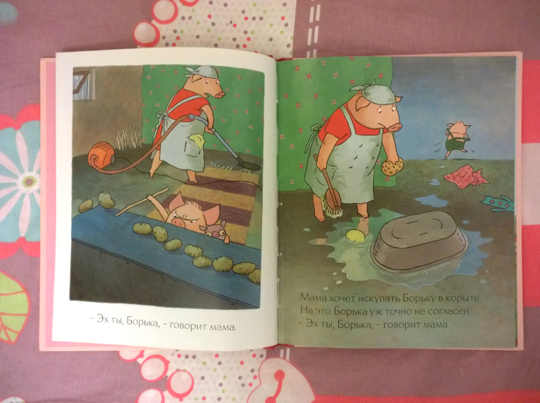 Судя по отзывам, эти книги или страстно обожают, или так же яро забраковывают. Мы, как вы поняли, из первых. Я люблю их за какую-то простую, неприукрашенную картину детства, где есть место и ревности к братишке, и занозам-хулиганам с их нападками, и желанию, обидевшись, бросить все и сбежать куда глаза глядят) А конец всегда хороший и правильный. Оффтоп: удивлением узнала, что теперь главного хрюна переименовали в... Бенни!! Это сразило меня наповал, но, может, не читай мы про Борьку, и не поняли бы разницы?) В общем, покупать эти книги или нет - смотрите сами. Я их нежно люблю, но и сама понимаю, что рассчитаны они не на самого массового читателя. Картинки из "Ай да Борька":